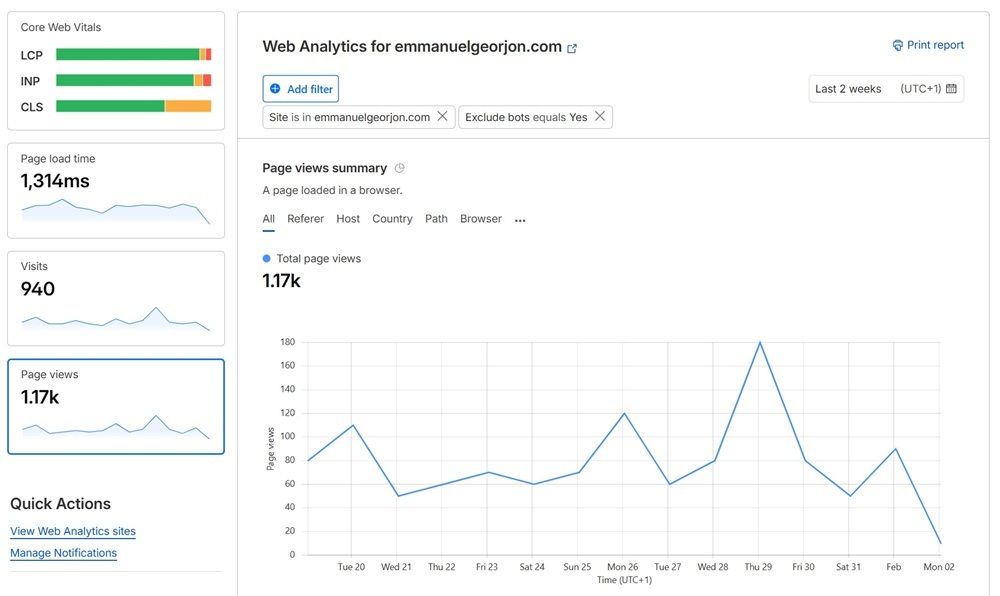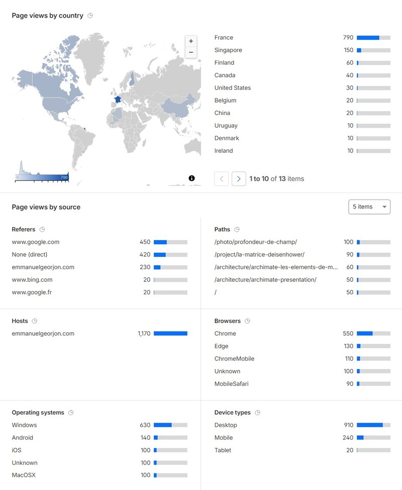 Cloudflare Web Analytics n’utilise pas de cookies et repose sur l’analyse des métriques de navigation (via les requêtes HTTP). Cela veut dire deux choses